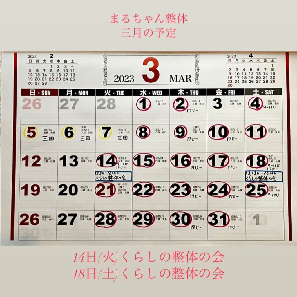 14日(火)13:30-16:00くらしの整体の会