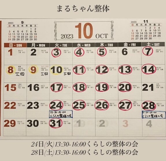 28日(土)13:30-16:00くらしの整体の会