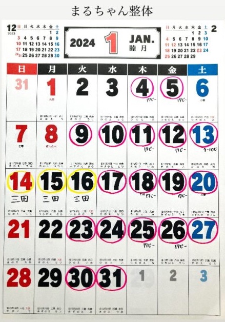 1月の予定のお知らせです。